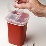Puncture resistant sharps containers that help reduce exposure to potential hazards.